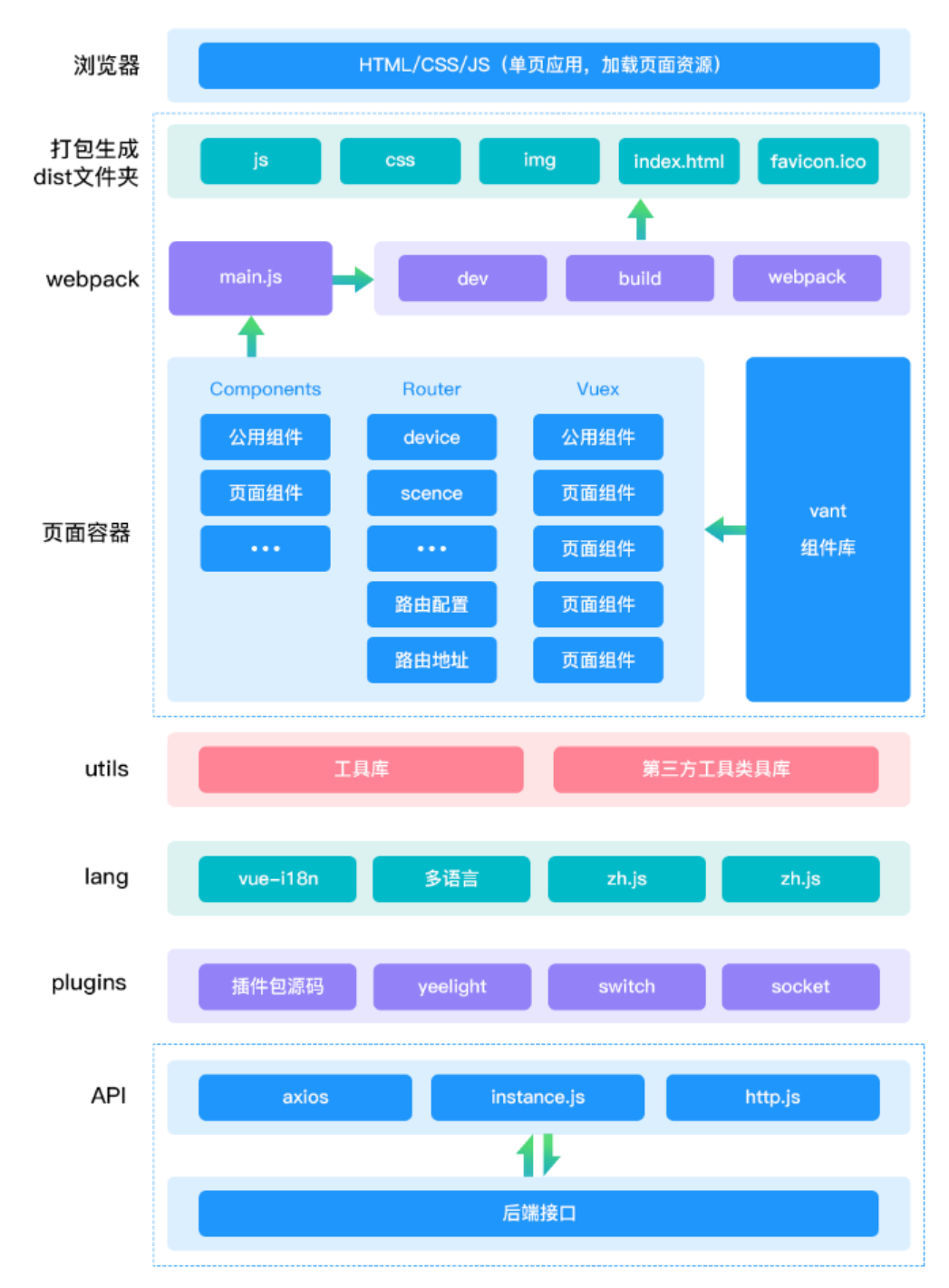 本文介绍了使用Vue、Webpack和Vant技术栈的项目结构,包括模块化开发、组件库、路由配置及关键文件位置。从HelloWorld示例到API接口、页面组件和资源管理,详解快速上手步骤。