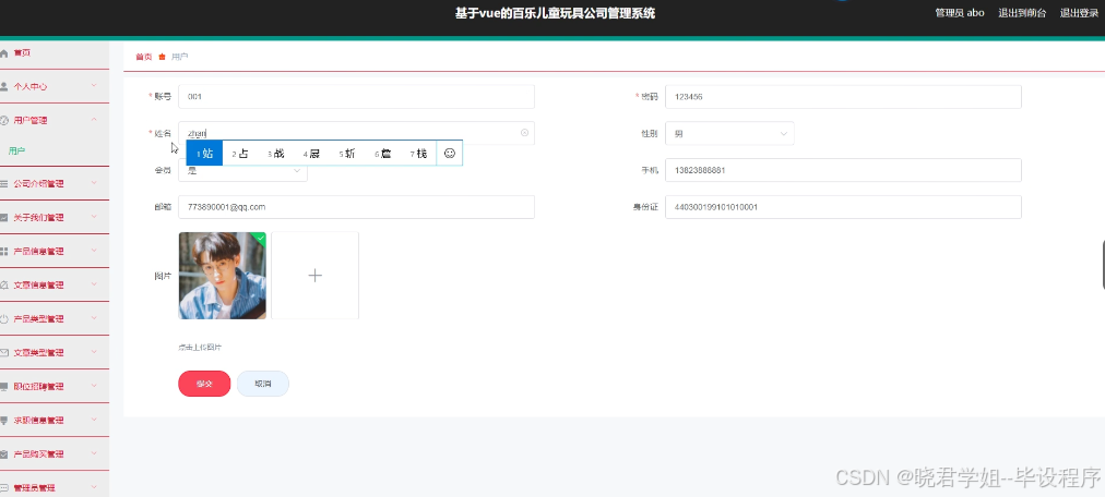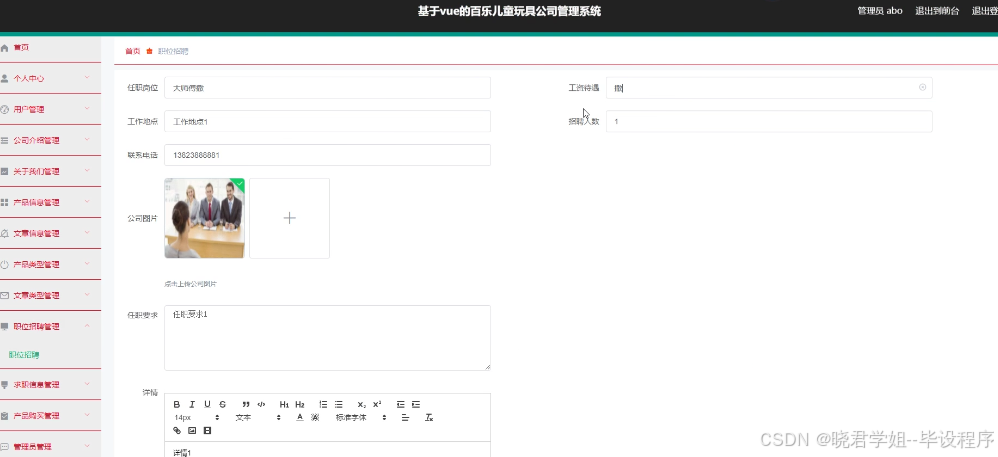 本基于Vue的百乐儿童玩具公司管理系统主要包含以下研究内容: