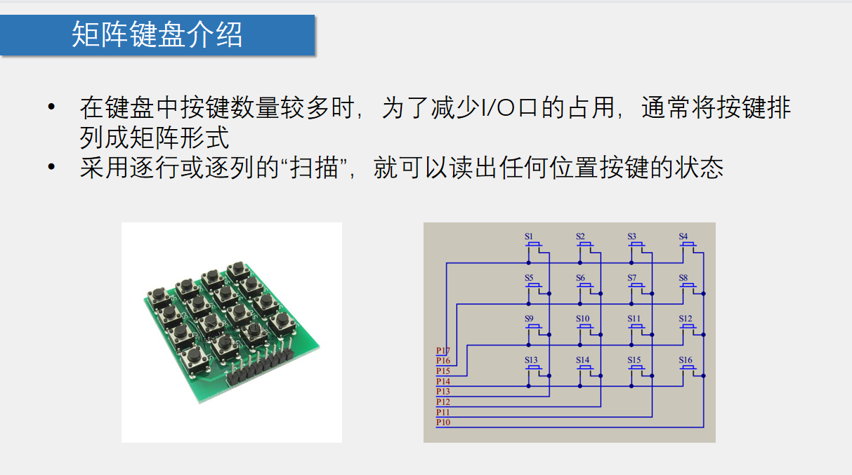 采用逐行或逐列的“扫描”,就可以读出任何位置按键的状态。