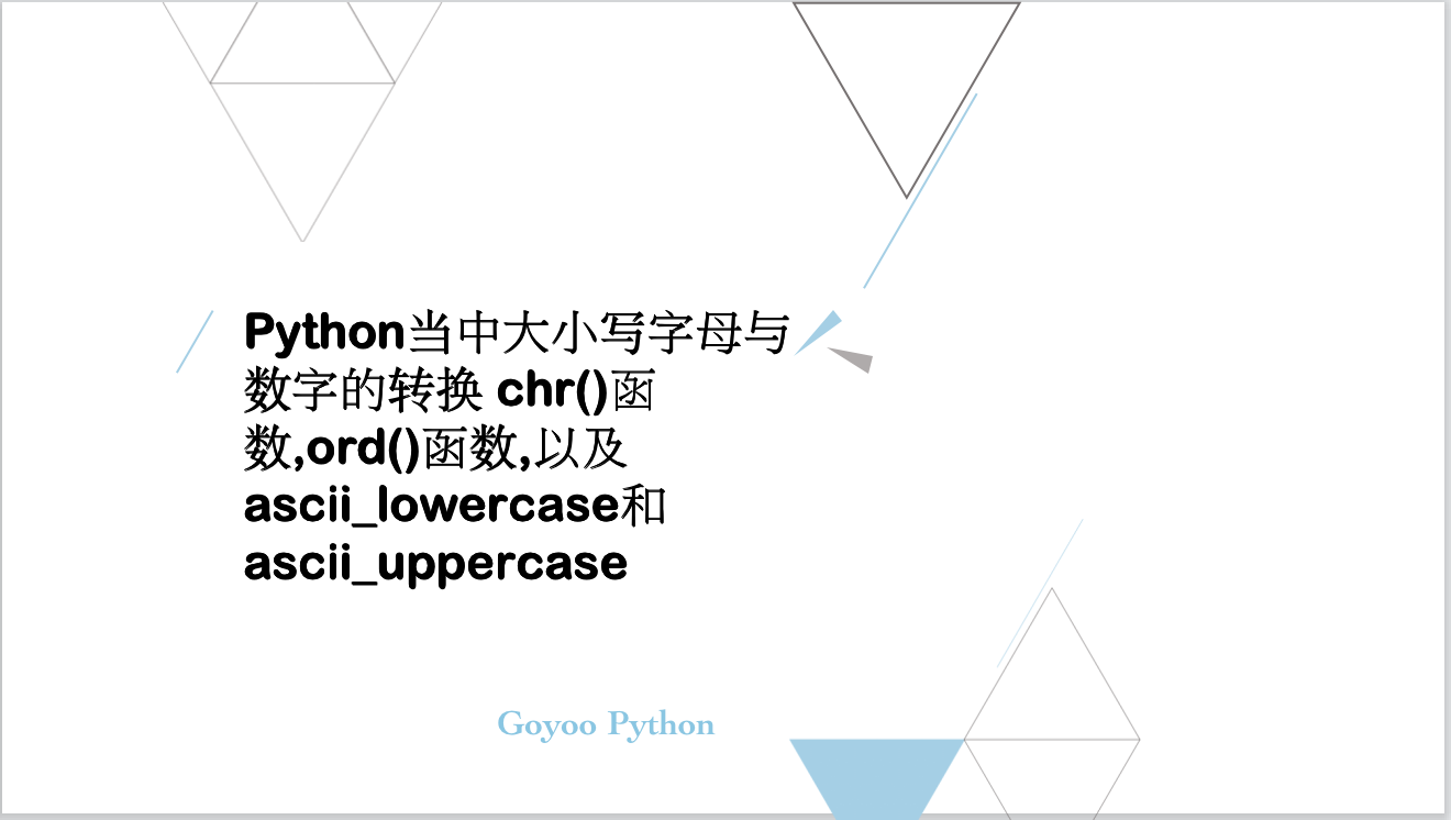 Python当中大小写字母与数字的转换 chr()函数,ord()函数,以及ascii_lowercase和ascii_uppercase Python当中大小写字母与数字的转换 chr()函数,ord()函数,以及ascii_lowercase和ascii_uppercase