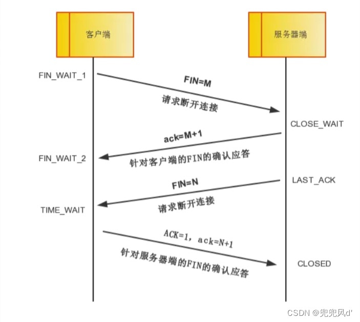详解TCP 四次挥手 当Server端也发送了FIN报文段时,这个时候就表示Server端也没有数据要发送了,就会告诉Client端,我也没有数据要发送了,之后彼此就会愉快的中断这次TCP连接。由于TCP连接是全双工的,因此,每个方向都必须要单独进行关闭,这一原则是当一方完成数据发送任务后,发送一个FIN来终止这一方向的连接,收到一个FIN只是意味着这一方向上没有数据流动了,即不会再收到数据了,但是在这个TCP连接上仍然能够发送数据,直到这一方向也发送了FIN。其中ACK报文是用来应答的,SYN报文是用来同步的。
