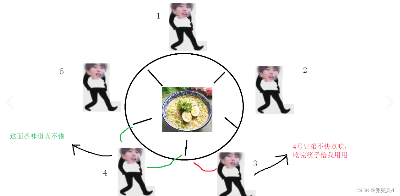 用信号量解决哲学家进餐问题 哲学家进餐问题是一个经典的并发编程问题,它涉及到一群哲学家坐在圆桌周围进餐。每个哲学家都必须完成两个任务:思考和就餐。他们之间共享一些餐具,如叉子,但每个哲学家在就餐时需要同时拿到左手和右手的叉子。如果某个哲学家左右两边的叉子都被其他哲学家拿走了,那么他就无法进餐,就会陷入饥饿状态,最终可能导致死锁。