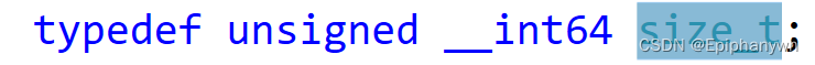 从上面的图片中可以看到 malloc 有一个参数且参数的类型为 size_t ,这种类型其实是一种无符号整形类型(可以通过VS编译器转到定义进行查看)