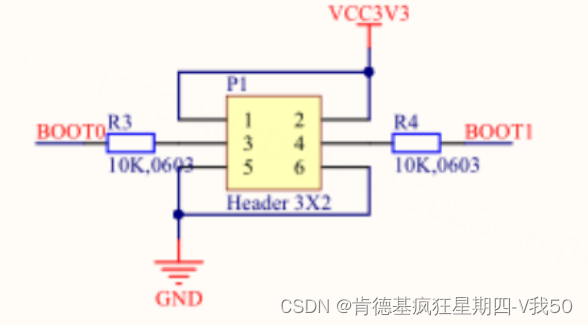 在最小系统板上,利用可拆跳线帽进行BOOT口与接地端或电源端。0表示接地,1表示电源。