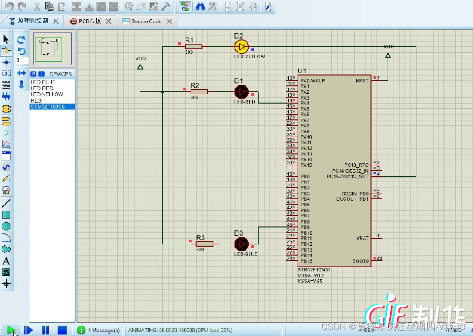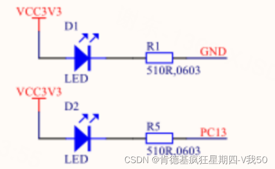 测试LED灯D2当PC13是低电平时亮,高电平时不亮。