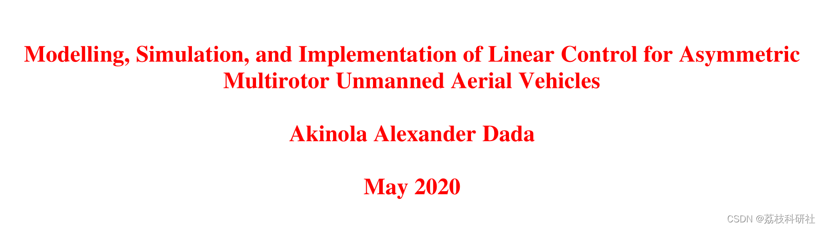 无人驾驶飞行器(uavs)是不直接由机载人员控制的空中系统。UA - V平台有很多种类型,主要由其机械结构的特点来定义。其中一类无人机是具有多个旋翼执行器的多旋翼无人机。这些类型的无人机由于其执行垂直/短距起降(VSTOL),静止和低速飞行的能力,以及与单旋翼结构相比相对简单的机械设计,具有广泛的应用范围。