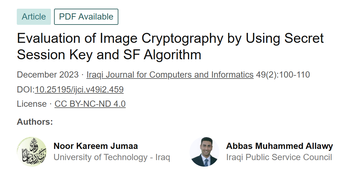 本研究介绍了一种安全密钥交换采用LFSR生成的会话密钥的方法,适用于任何密码系统。疗效如何图像加密中的SF算法得到了证实通过全面的图像质量评估。这个所提出的密钥交换技术包括利用LFSR作为16个十六进制数字(64位)的生成器比特),形成对加密和密钥管理至关重要的会话密钥使用SF算法对图像进行解密。SF算法在图像中的有效性加密/解密因其性能而受到重视使用各种图像质量度量进行评估。这个MSE值明显区分加密和未加密的原始图像,而普通图像的 MSE 为 0解密图像突出了算法的能力保持图像完整性。可变失真水平加密图像,由PSNR值显示,结果来自SF修改。明文和已解密文本的 PSNR 均为 ꝏ图像强调了该技术在恢复原始图像。此外,NK读数为1对于普通和解密图像,以及NAE分数如果为 0,则表示 SF 算法准确地返回了将图像的解密数据还原到其确切的来源,无论文件类型(tif、jpg或png)。尽管NK和NAE值表明平原和山地之间的极端相似性加密图像,图6至图11直观地展示了加密图像与它们的纯文本非常相似相对应的人。这突显了SF方法在在图像处理过程中保留原始图像的主要特征加密和解密,尽管存在潜在风险考虑作为SF密码的一个缺点当应用于图像时,该技术具有优势。