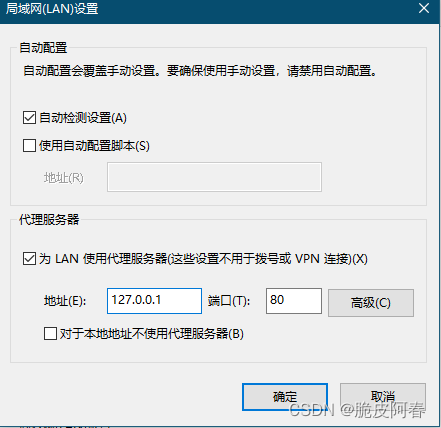 如图1.2 IE浏览器代理设置界面
