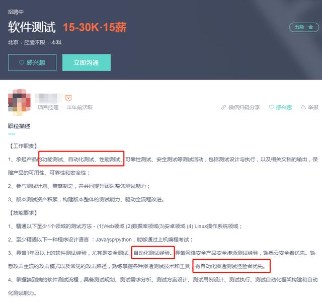 打开任意软件测试的招聘需求,都可以看到企业明确提出需要会自动化测试的人才。