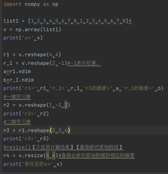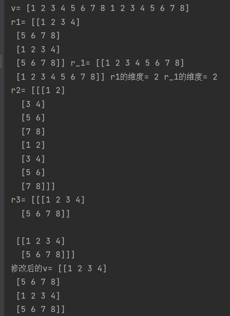 reshape是把列表塑成几行几列的数组,r1为四行四列,r_1是2行,-1的意思是系统会根据四行自动匹配列,所以为两行八列,且都是二维数据