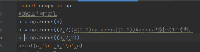 全为0,np.zeros()括号里只能接受一个参数,如果多数字要以元组的形式