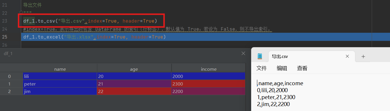 df_1.to_excel("导出.xlsx",index=True, header=True)