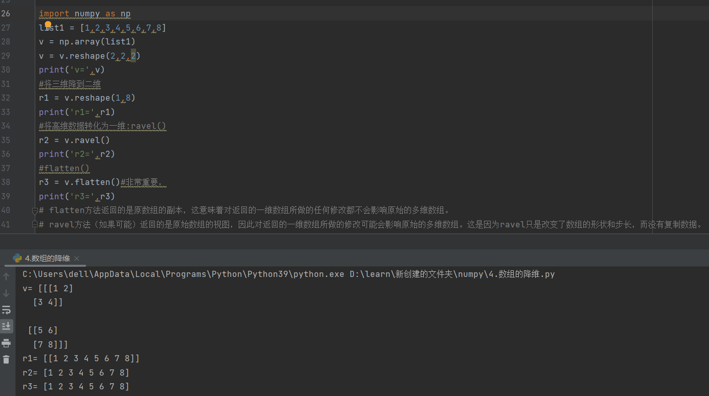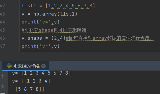 补充一点,shape其实也可以实现降维,是直接对array数据的属性进行修改