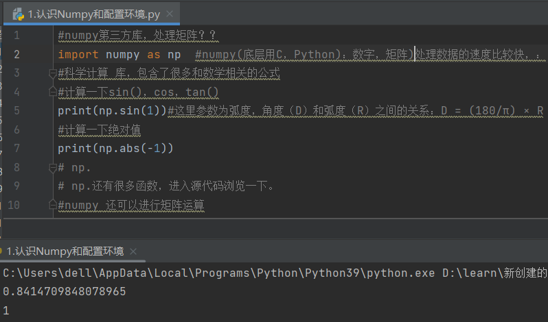 1.导入numpy库为np,np可以计算三角函数和绝对值