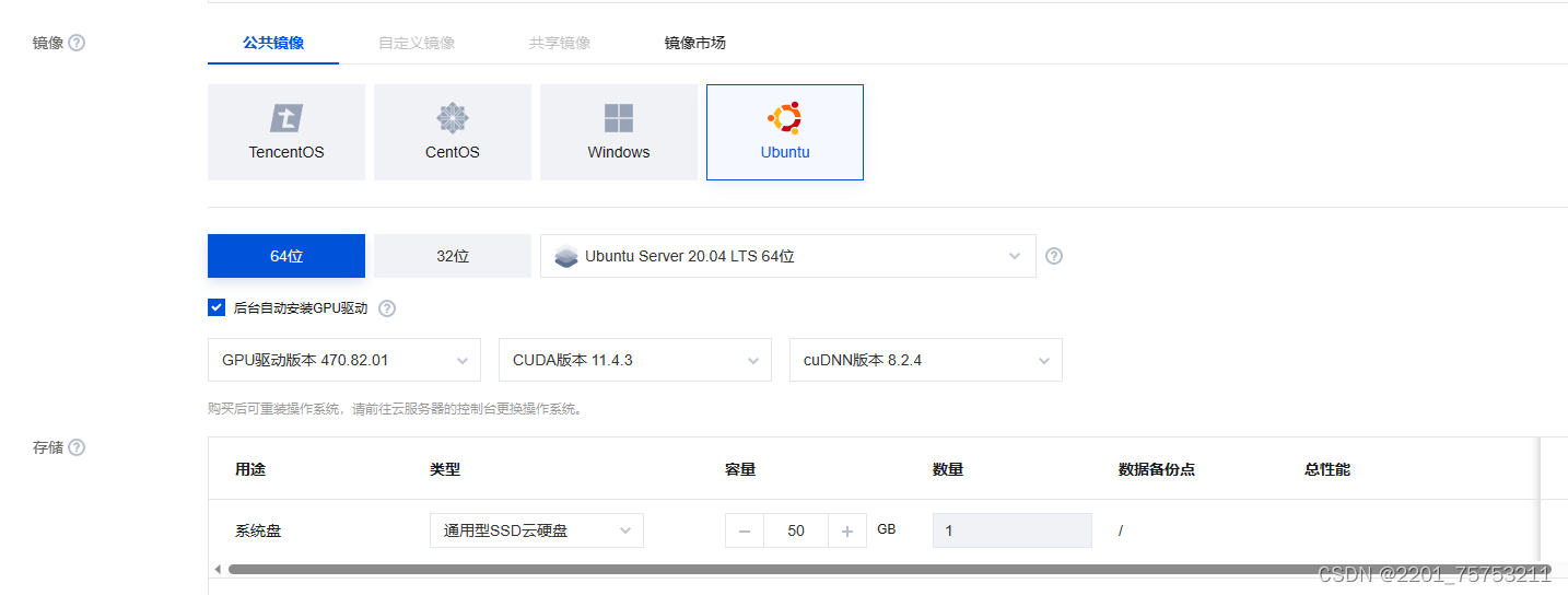 镜像我选择的ubuntu20.04,已经配置cuDNN和CUDA,省去手动配置的麻烦。