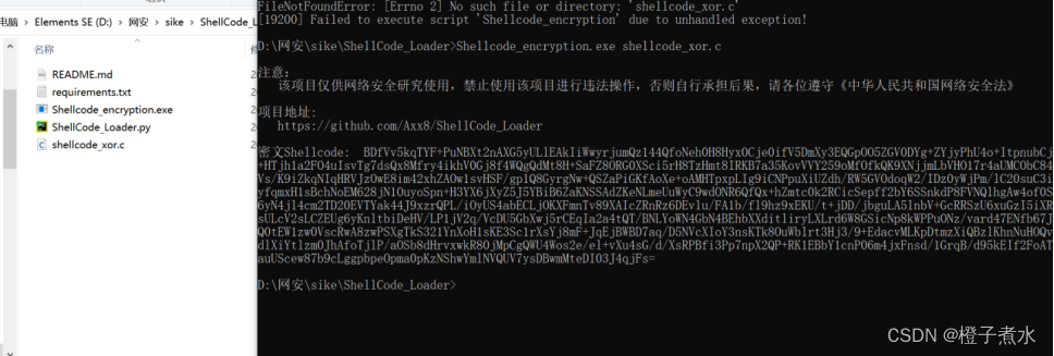 D:\网安\sike\ShellCode_Loader>Shellcode_encryption.exe shellcode_xor.c
