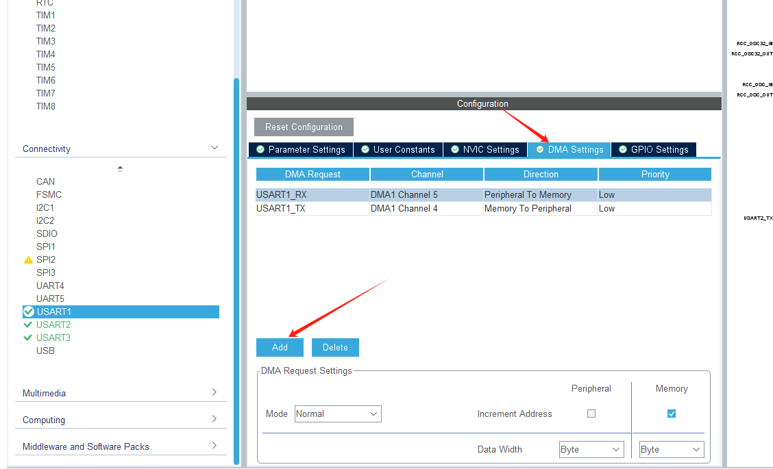 这种写法串口收发都是通过DMA搬运,可以不经过cpu实现收发,实时性比较高。由此可见,DMA式实现串口收发的效率是最好。下面就是串口配置DMA通道的流程。