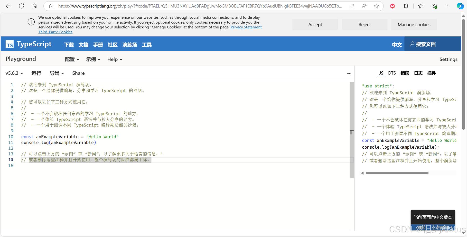 接下来我会带着大家从TS开始入手,逐步走向ArkTS,大家可以选择本地搭建TS环境或是使用线上的TS环境,这里我采用线上环境为大家演示