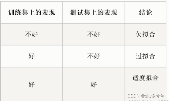 误差:预测输出y ̂与真实输出y之间的差异; 经验误差、训练误差:在训练集上的误差; 泛化误差:在新样本上的误差。 泛化误差越小越好,经验误差不一定越小越好,可能导致过拟合。