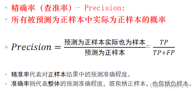 虽然准确率可以判断总的正确率,但是在样本不平衡 的情况下,并不能作为很好的指标来衡量结果。- 举个简单的例子,比如在一个总样本中,正样本占 90%,负样本占 10%,样本是严重不平衡的。