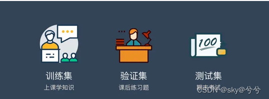 3种数据集之间的关系: 训练集相当于上课学知识 验证集相当于课后的的练习题,用来纠正和强化学到的知识 测试集相当于期末考试,用来最终评估学习效果
