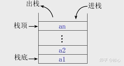 如上图:a1为栈底元素,an为栈顶元素。由于栈只能在栈顶进行插入和删除操作,故进栈次序依次为a1,a2,... ,an 而出栈次序为an,...,a2,a1。栈的明显的操作特征为后进先出(Last In First Out,LIFO),故又称 后进先出的线性表。