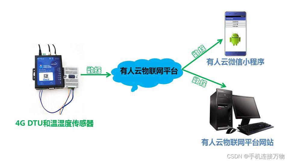 之前的物联网应用实验基本都是通过WIFI联网的,但实际项目中,如果遇到没有互联网,没有WIFI的环境该怎么办?这时候就需要用到可以连接4G或5G网络的模块或设备了。这类产品种类很多,有4G模块、4G路由器、4G DTU、边缘网关等不同侧重的产品。本次我们主要围绕“有人USR-G780s”这款工业4G DTU设备进行测试,通过将温湿度传感器连接4G DTU上传数据到物联网平台的实验,来了解和学习使用4G DTU。