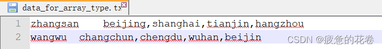 切割后, 数据格式为: "zhangsan", ["beijing", "shanghai" ,"tianjin", "hangzhou"]