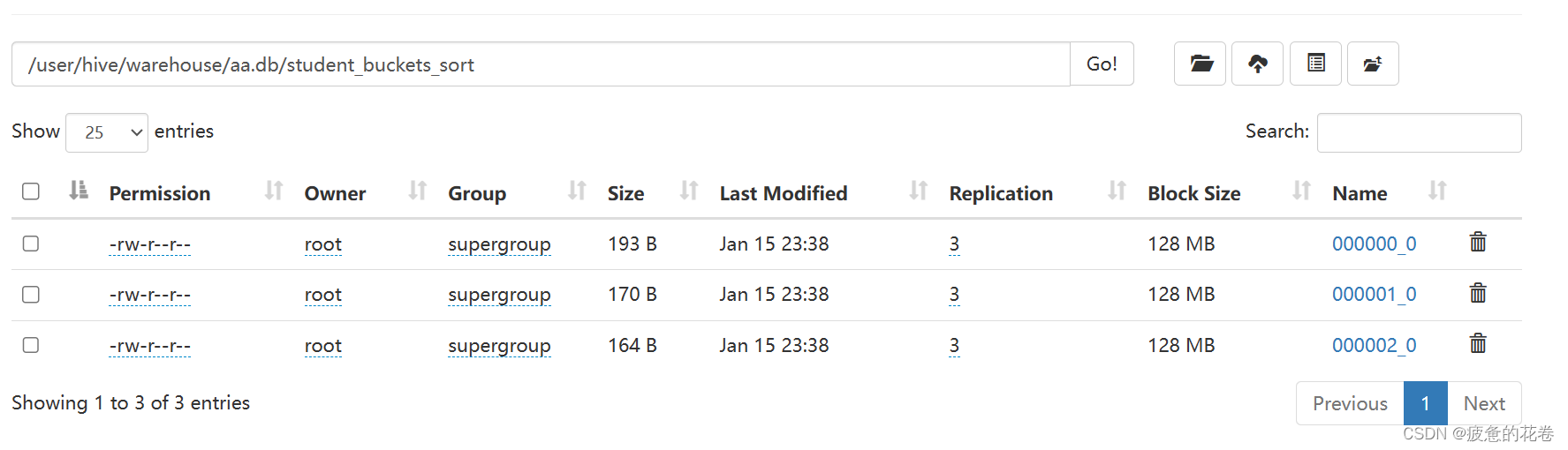 2. 分桶数量 = HDFS文件系统中, 最终的文件数量.