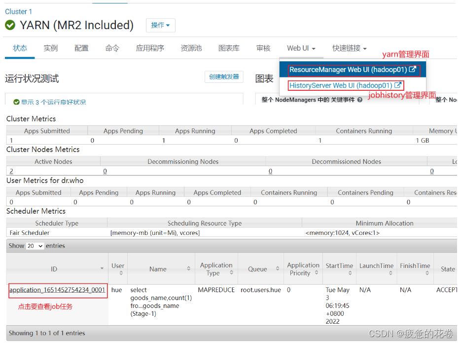 方式: 通过Yarn查看(运行过程中) 或者 jobhistory查看(已经结束的程序) (此操作, 只能在本地演示查看, 云端环境没有开启yarn端口, 无法查看的)