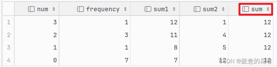 关注sum字段和sum1,sum2的区别(order by 对每个记录排序后,由sum并累加到当前记录,其他计算函数也一样)