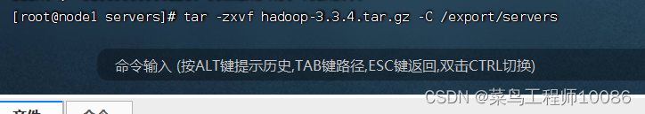 命令:tar -zxvf hadoop-3.3.4.tar.gz -C /export/servers