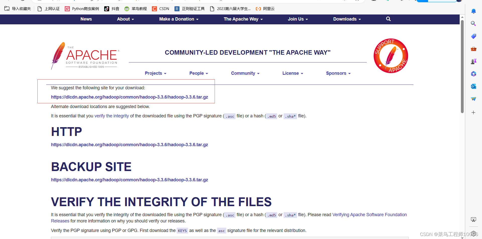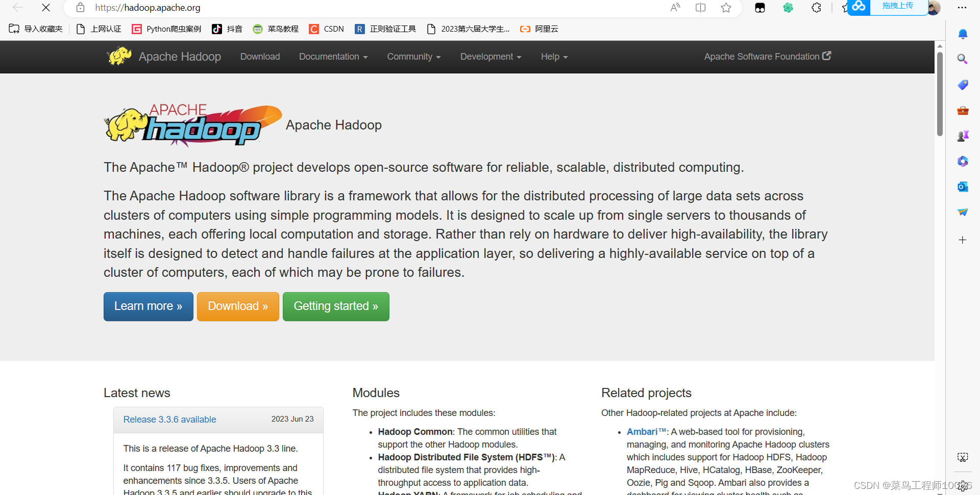 Hadoop有自己官网(Apache Hadoop),可直接点击链接前往官网下载,或者链接: 链接:https://pan.baidu.com/s/1LFvqn7adVsA9nnoOVGIpdg?pwd=1111
