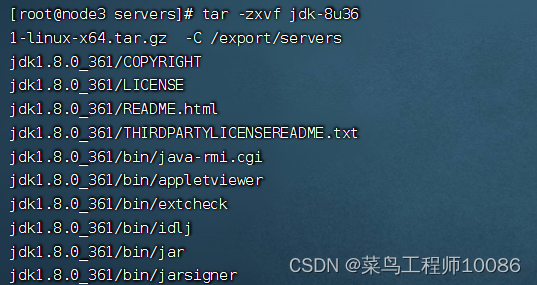 3.解压文件 命令: tar -zxvf jdk-8u361-linux-x64.tar.gz -C /export/servers