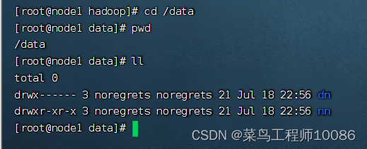 • datanode 数据存放 node1 、 node2 、 node3 的 /data/dn