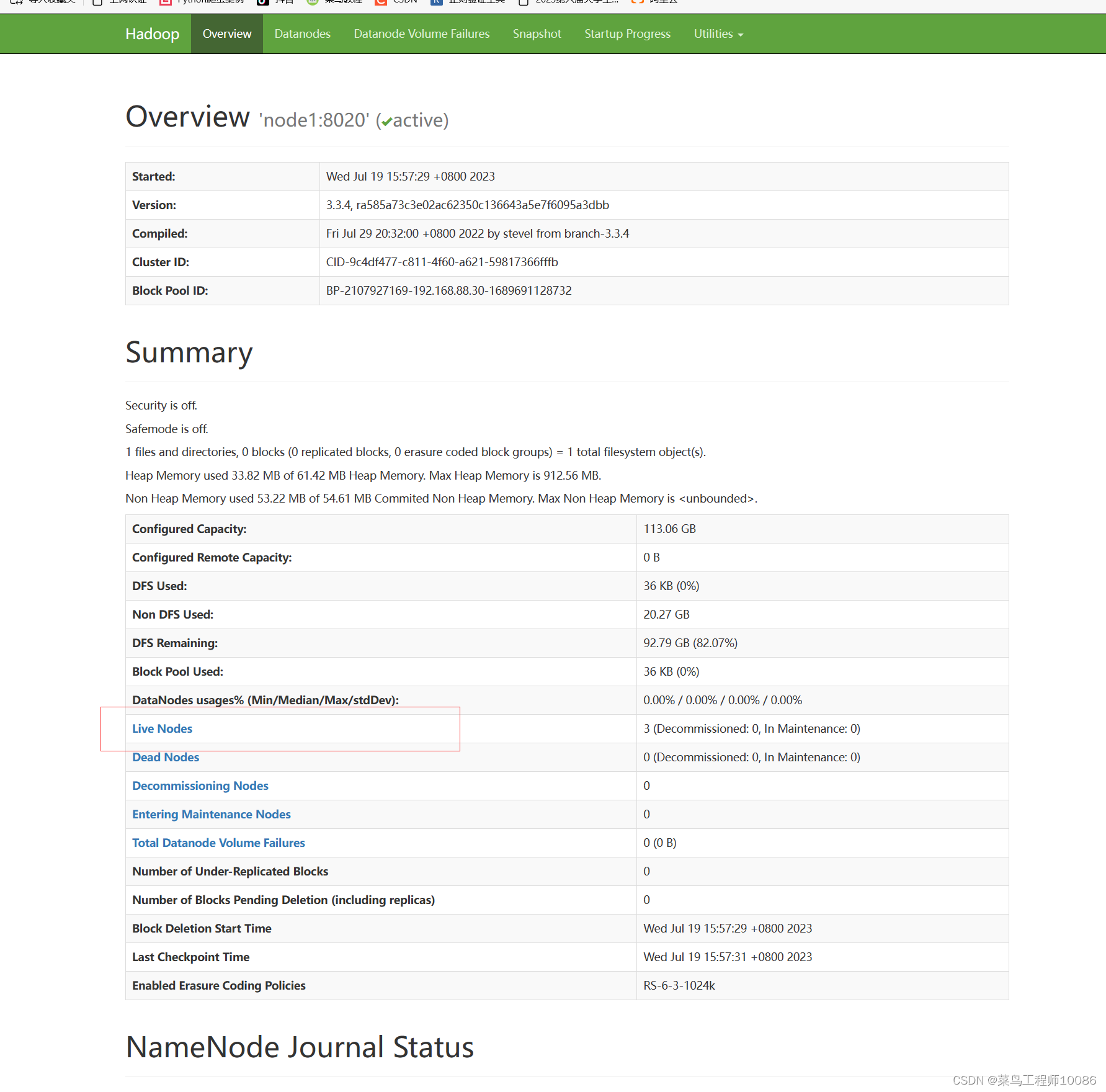 浏览器打开网址:http://node1:9870,并打开框选选项