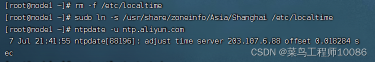 加载新时区:sudo ln -s /usr/share/zoneinfo/Asia/Shanghai /etc/localtime