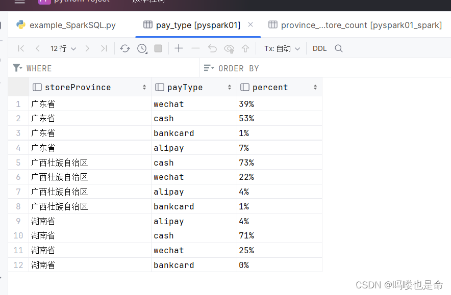 top3_province_order_avg_df.write.mode('overwrite').saveAsTable('default.pay_type', 'parquet')