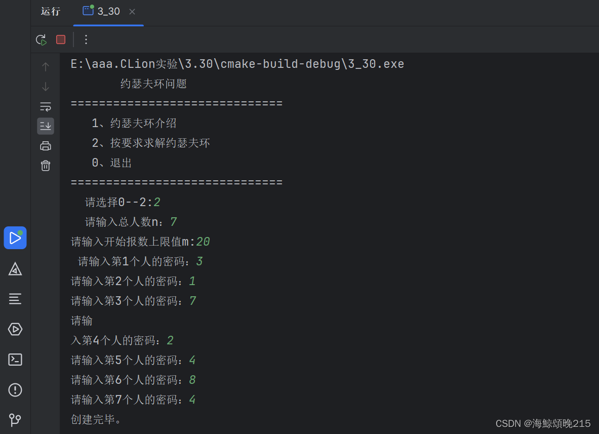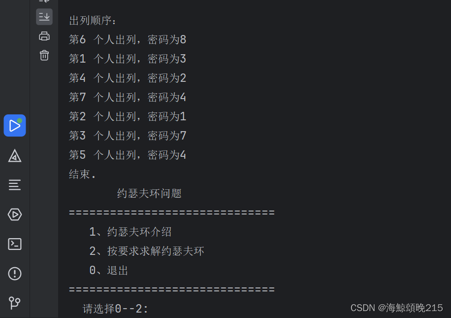 printf(" 约瑟夫环问题 \n"); // 显示菜单