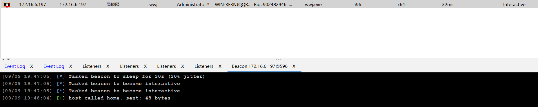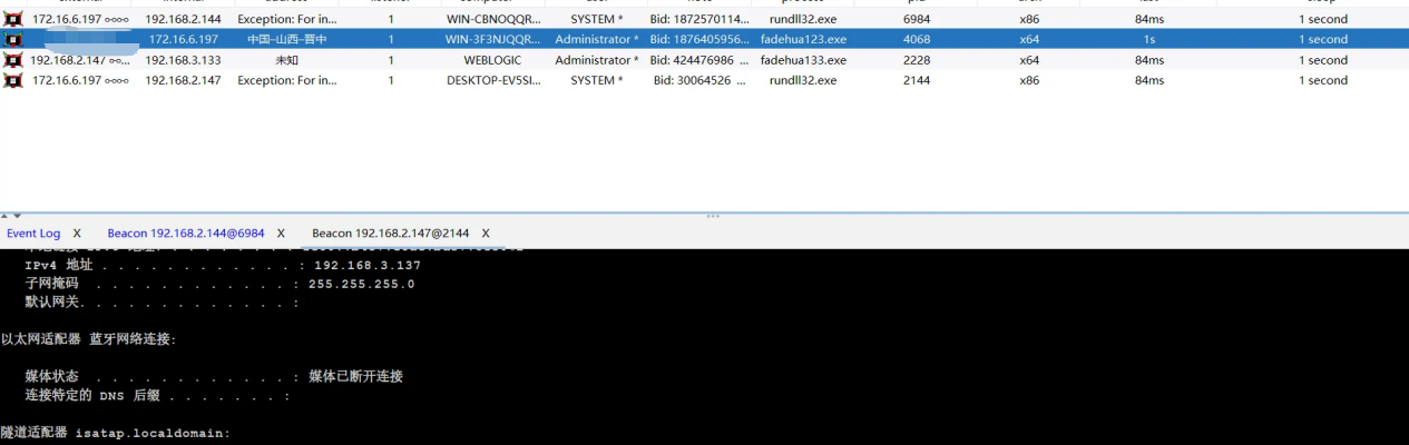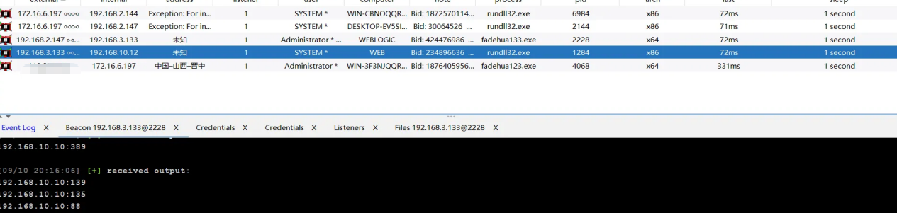 永恒之蓝上线后,利用 msf 上线到 cs 上,后续使用 cs 做