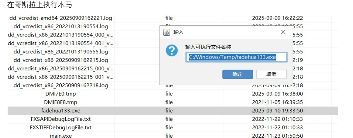 execute -f C:\\Windows\\Temp\\wwj.exe \\运行可执行文件wwj.exe
