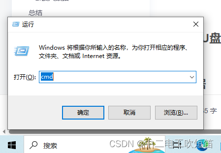 使用win+r组合键开运行对话框输入cmd