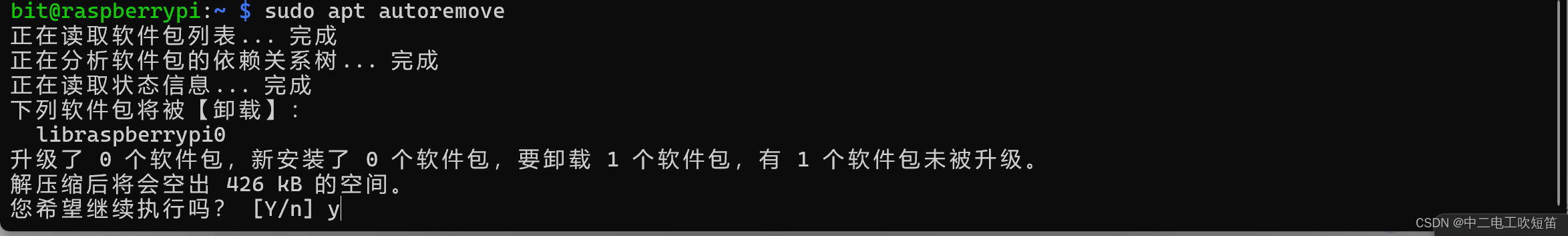 等待更新完毕,再清除一下已经过时的软件包,输入命令: