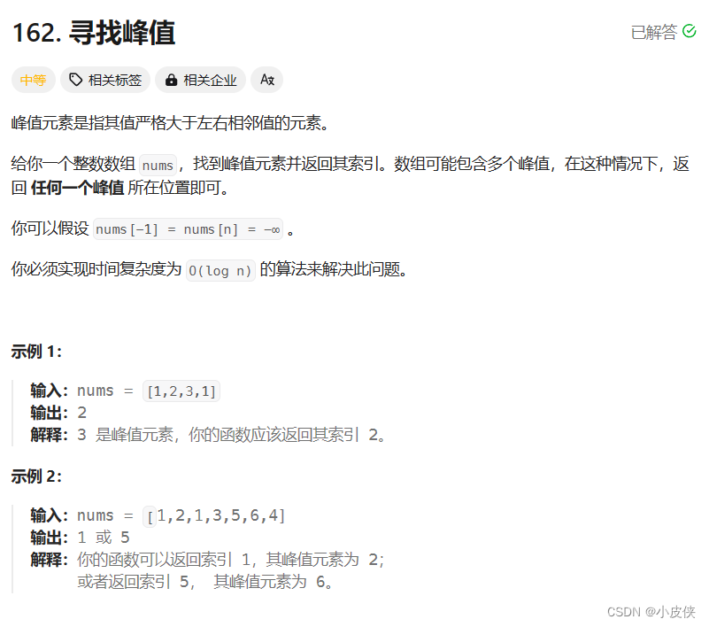- arr[i] < arr[i + 1] :此时「右侧区域」⼀定会存在⼭峰(因为最右侧是负⽆穷),那么我们可以去右侧去寻找结果。