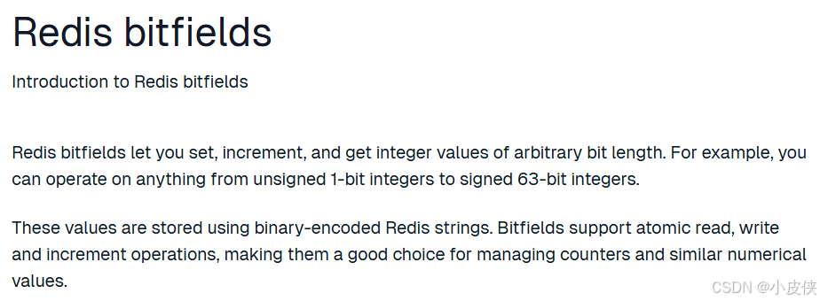bitfields即位域, 是一种让我们精确进行位操作的一种方法,和C语言中的位段十分相似。bitfield可以理解为一串二进制序列(字节数组),同时可以把这个字节数组中的某几个位赋予特定的含义,并且可以进行读取/修改/算术运算 相关操作。