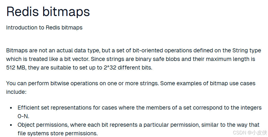 redis给我们提供的数据类型最为广泛使用的是以上五种,但是redis还为我们提供了以下几种数据类型以便于我们在特定场景下使用,下面我们就依据官方文档来具体了解下下面的类型分别都是干什么的。