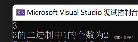 printf("%d的二进制中1的个数为%d", n, ret);